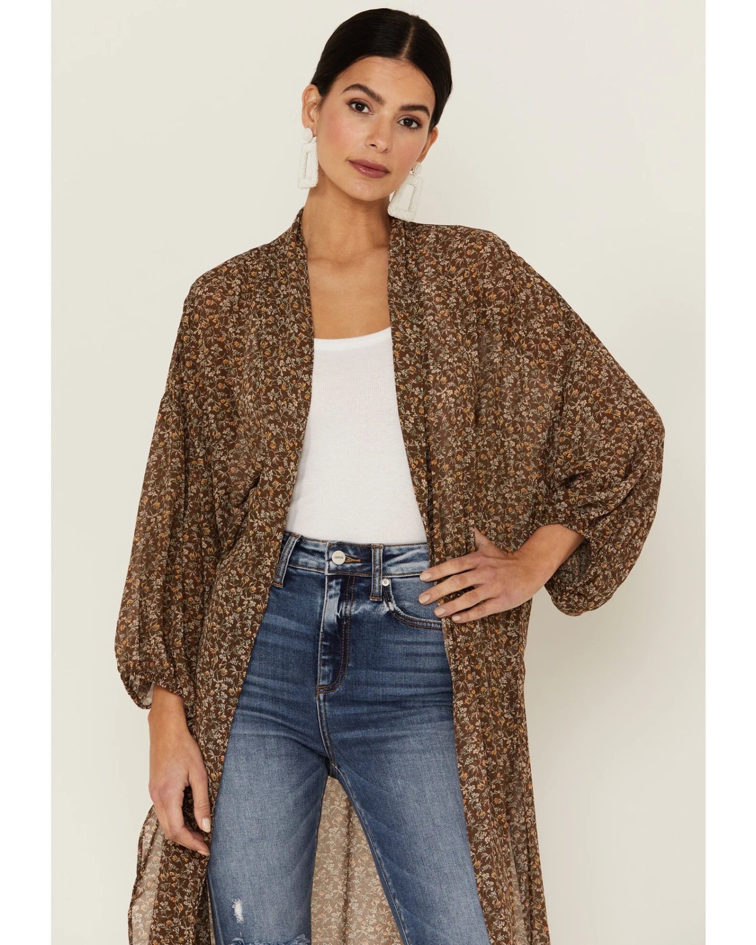 Beyond The Radar Women’s Floral Chiffon Duster Maxi Kimono
