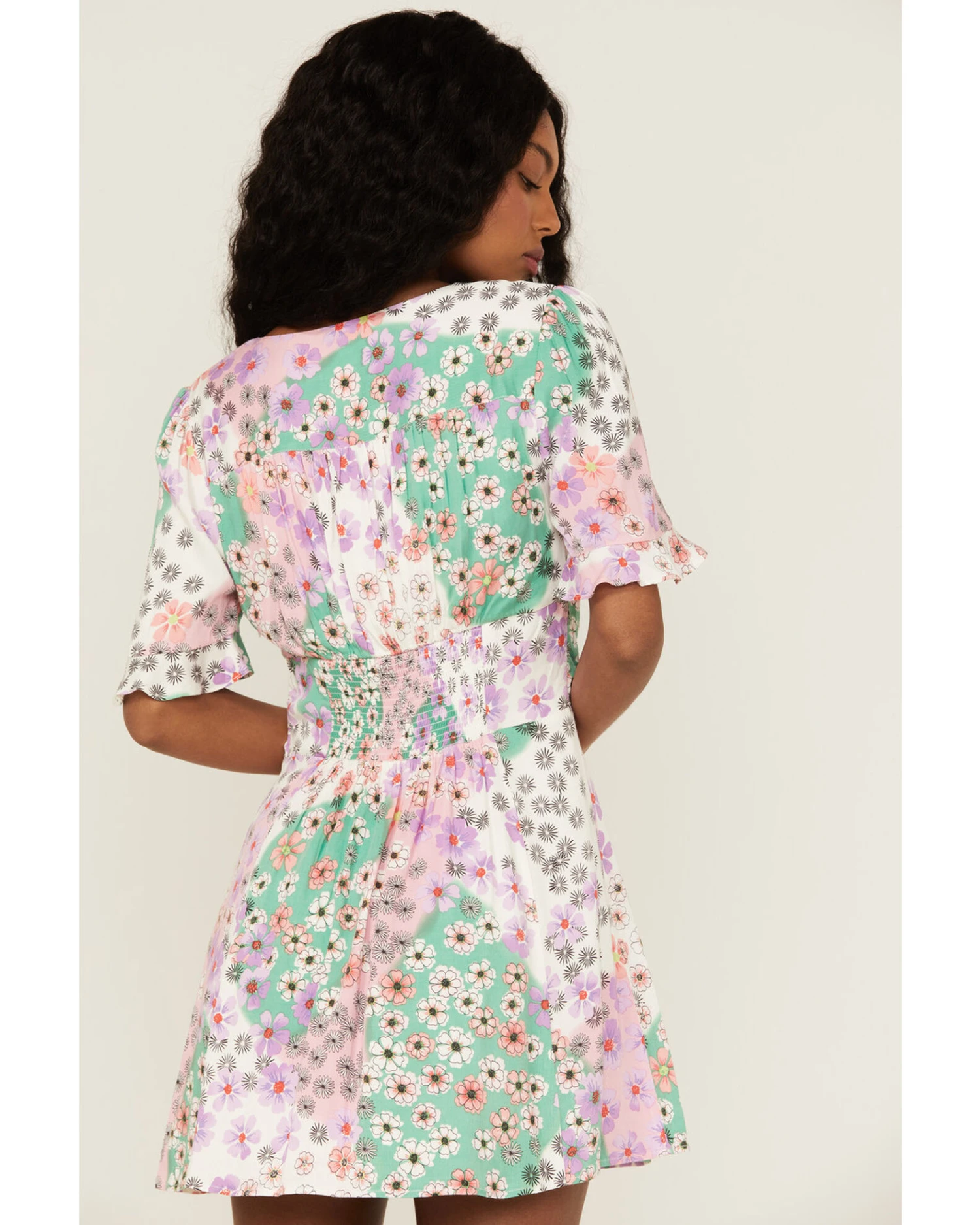 Beyond The Radar Women’s Mixed Floral Print Corset Mini Dress