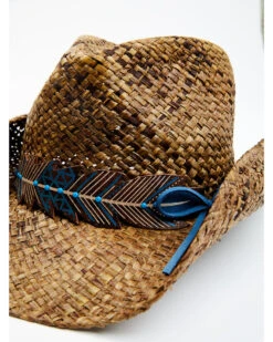Shyanne Women’s Plumazles Brown Leaf Band Raffia Straw Western Hat