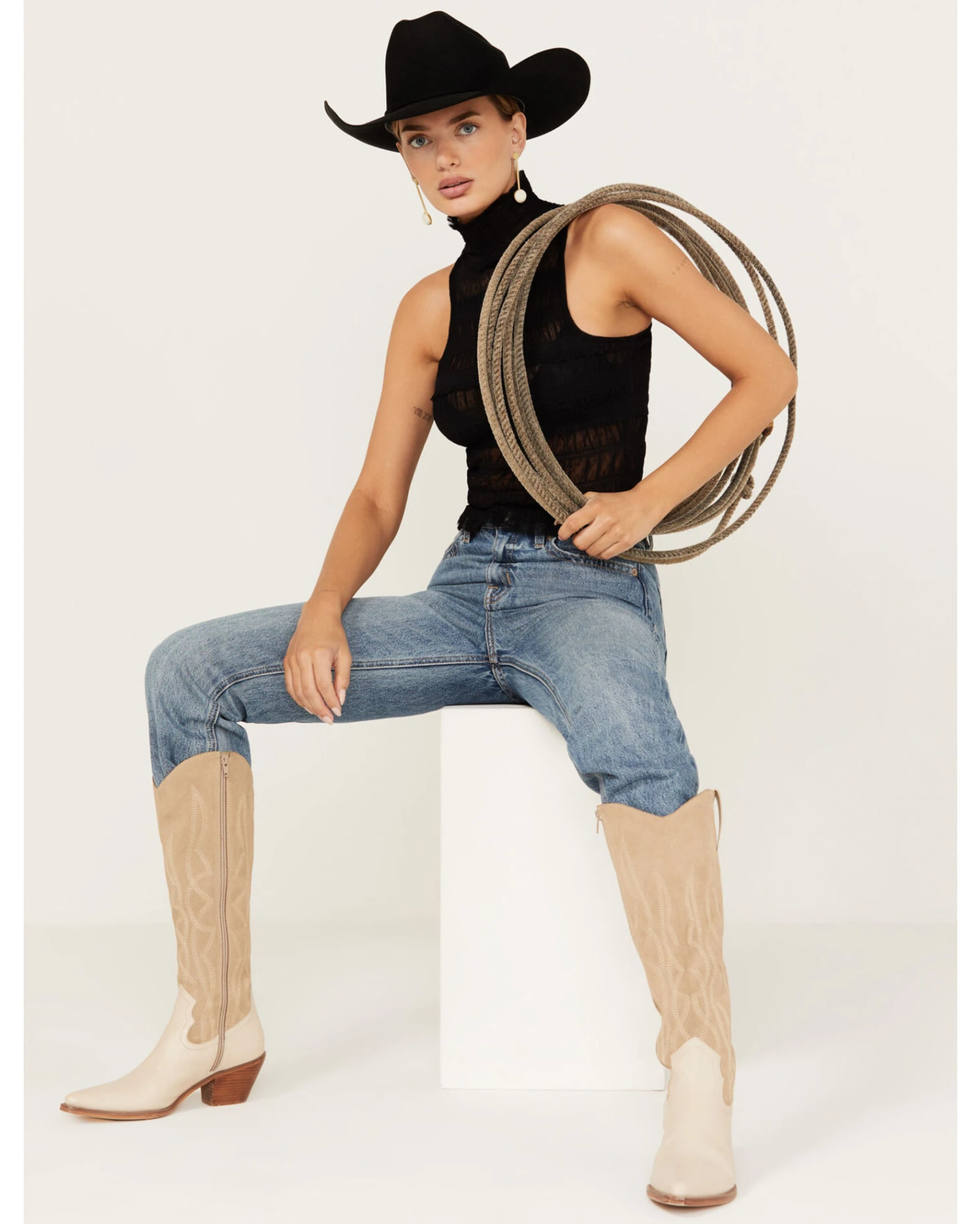Free People Women’s Dakota Heel Studded Leather Western Boots – Pointed Toe
