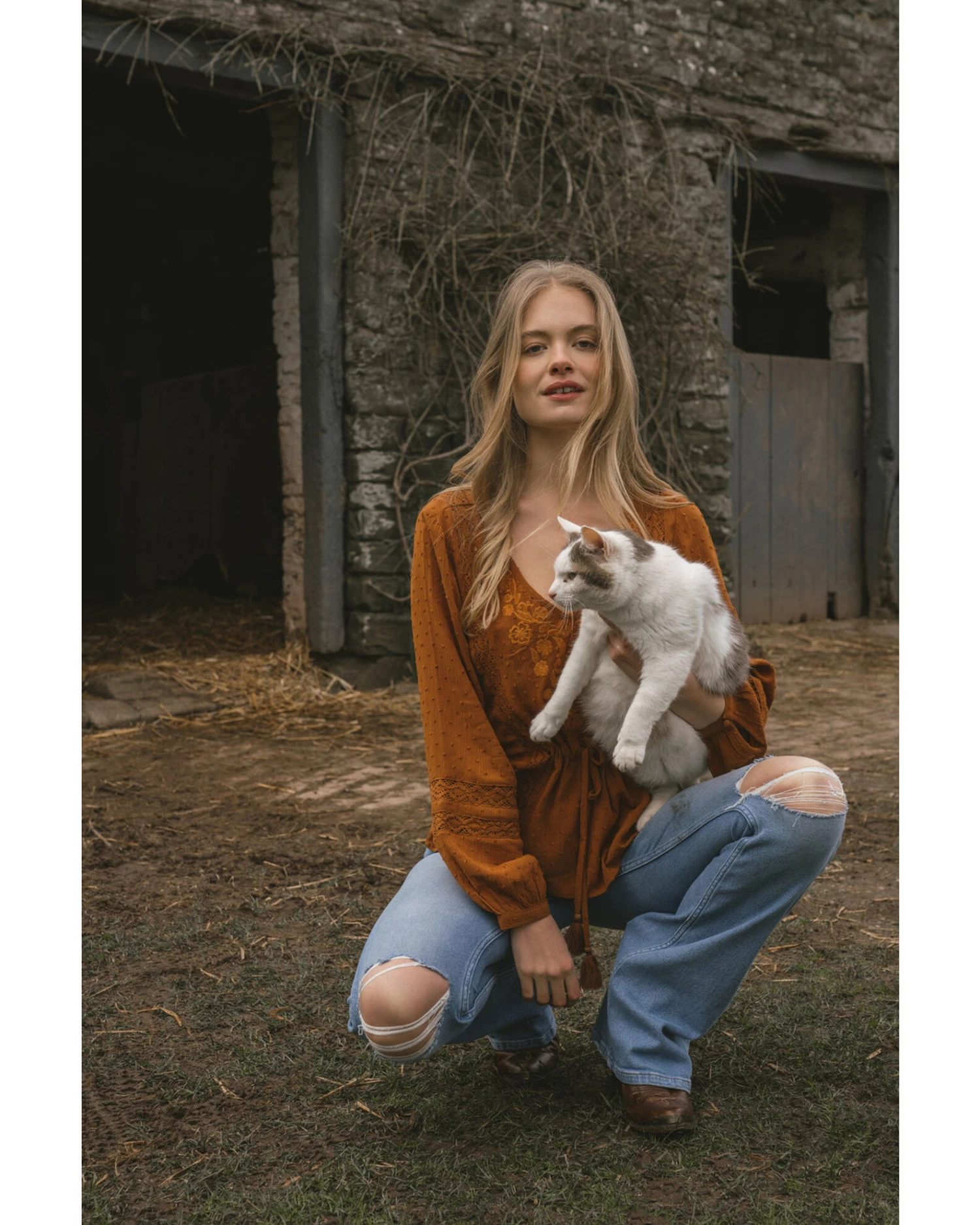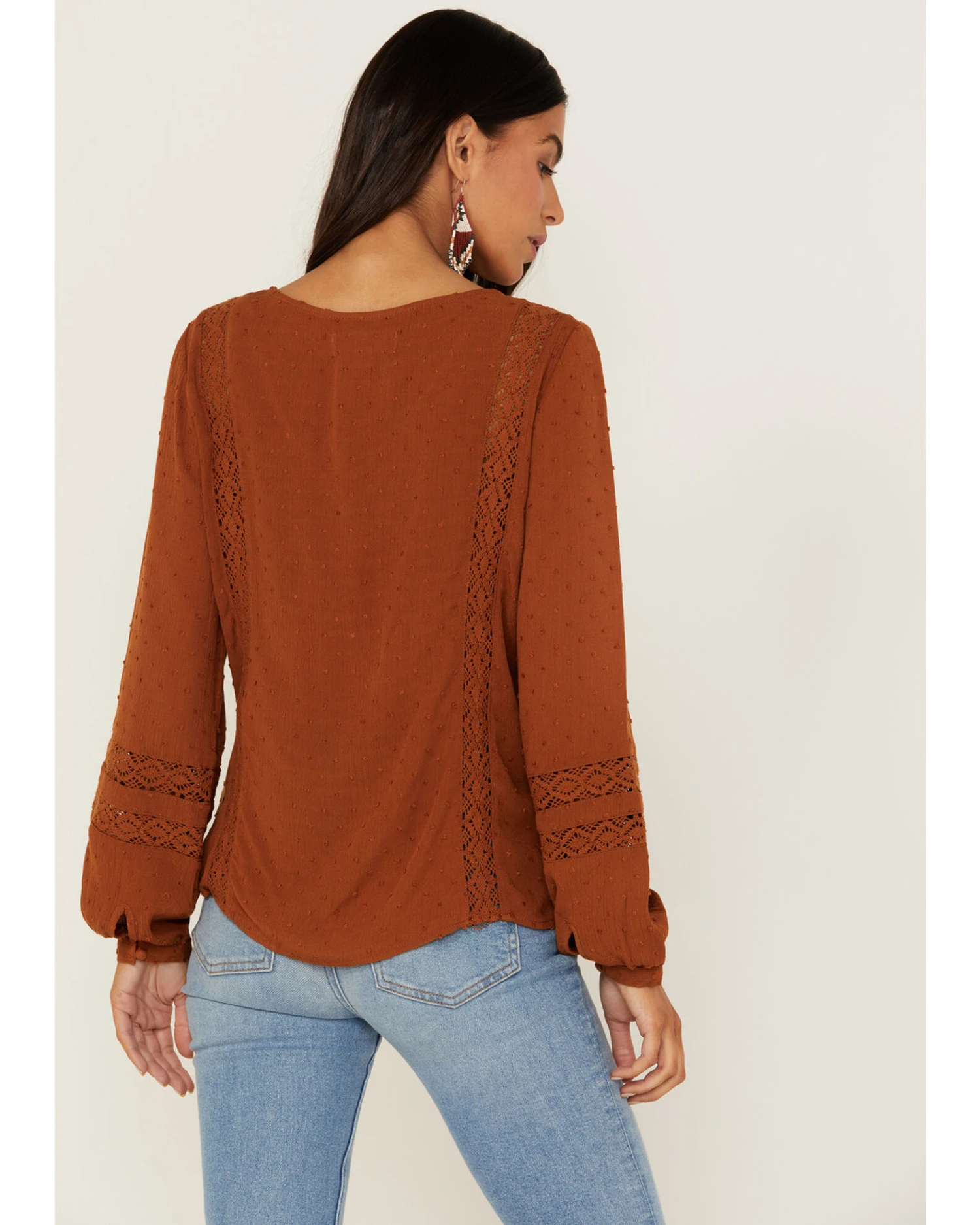Idyllwind Women’s Romance Floral Embroidered Swiss Dot Blouse