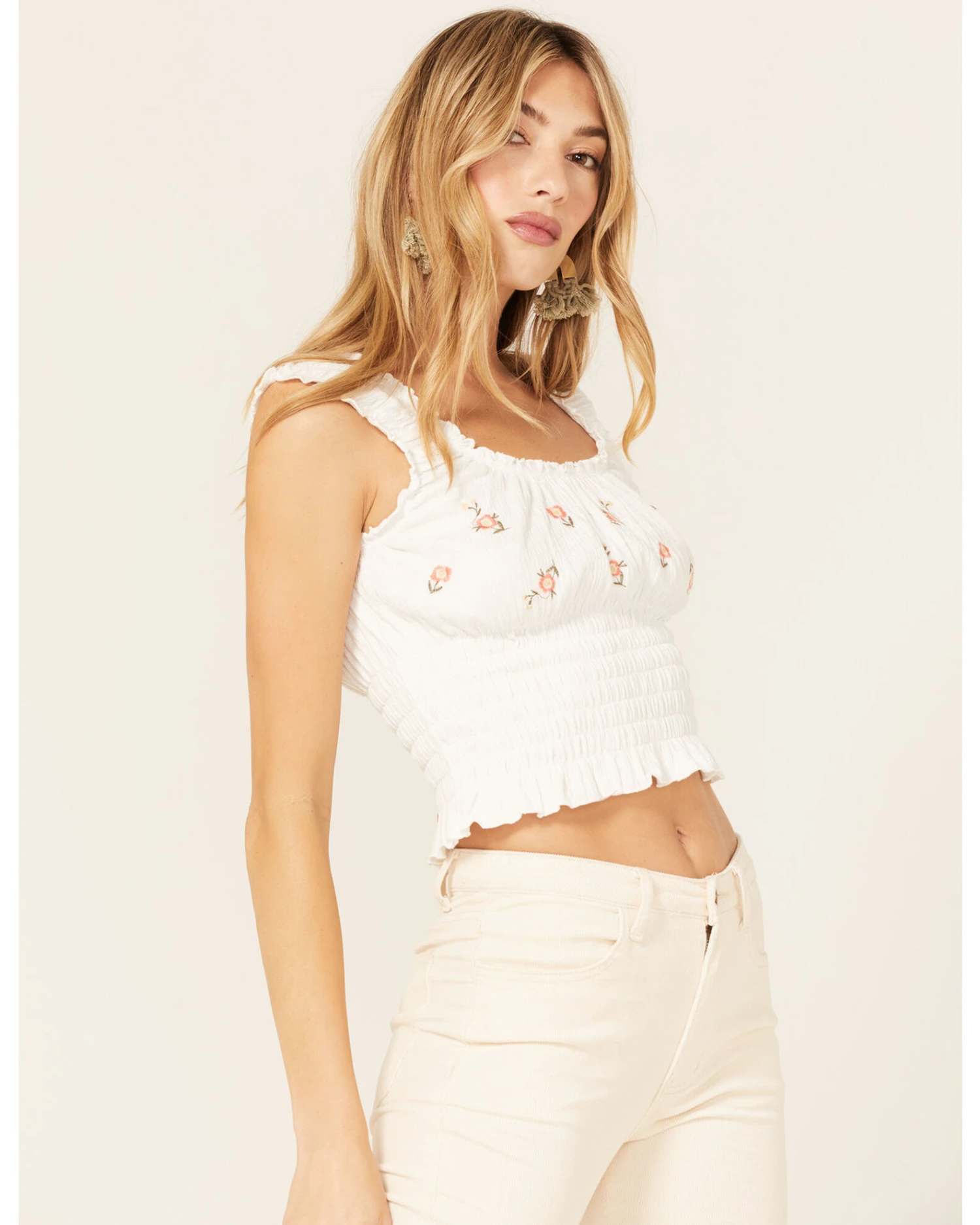 Jolt Women’s Floral Embroidered Smocked Tank Top