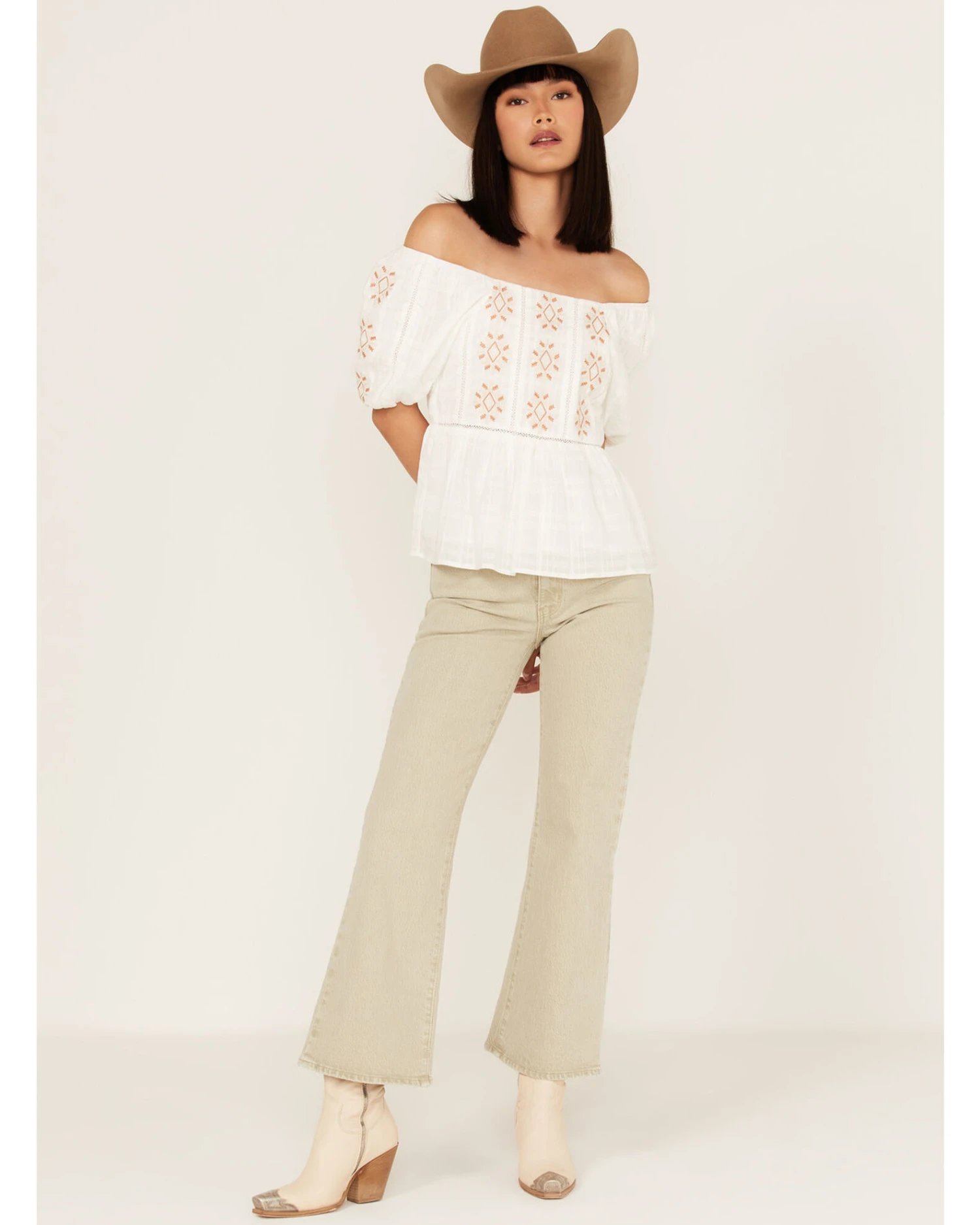 Miss Me Women’s Embroidered Puff Sleeve Top