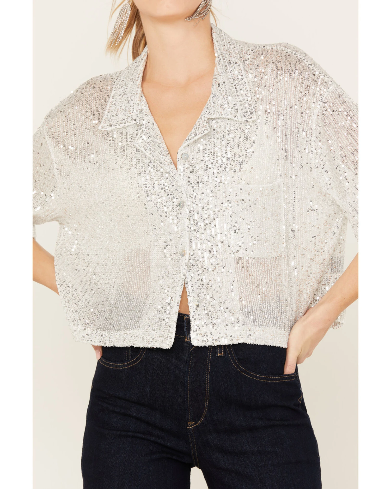 POL Women’s Sequin Button Up Top