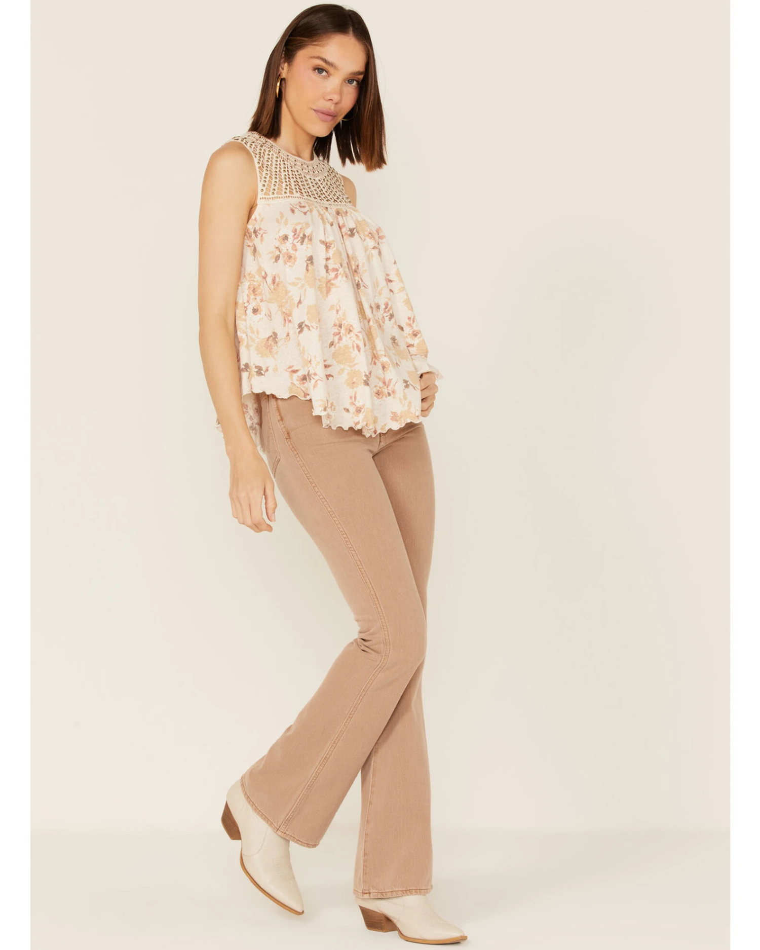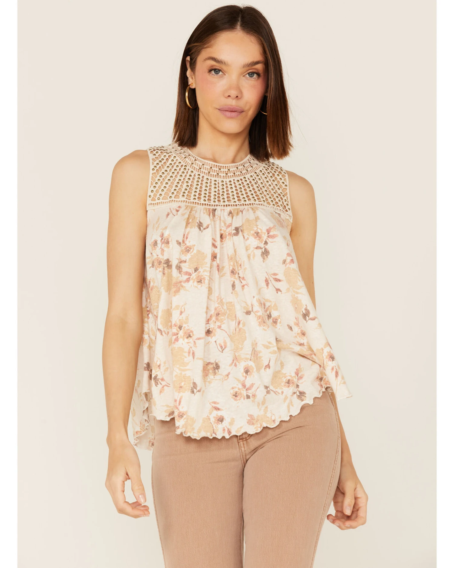 Wild Moss Women’s Crochet Studded Yoke Flowy Tank Top