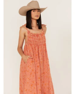 A Collective Story Women’s Coral Floral Peasant Tiered Dress